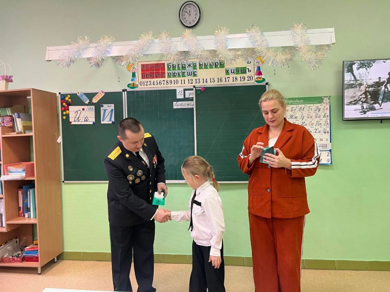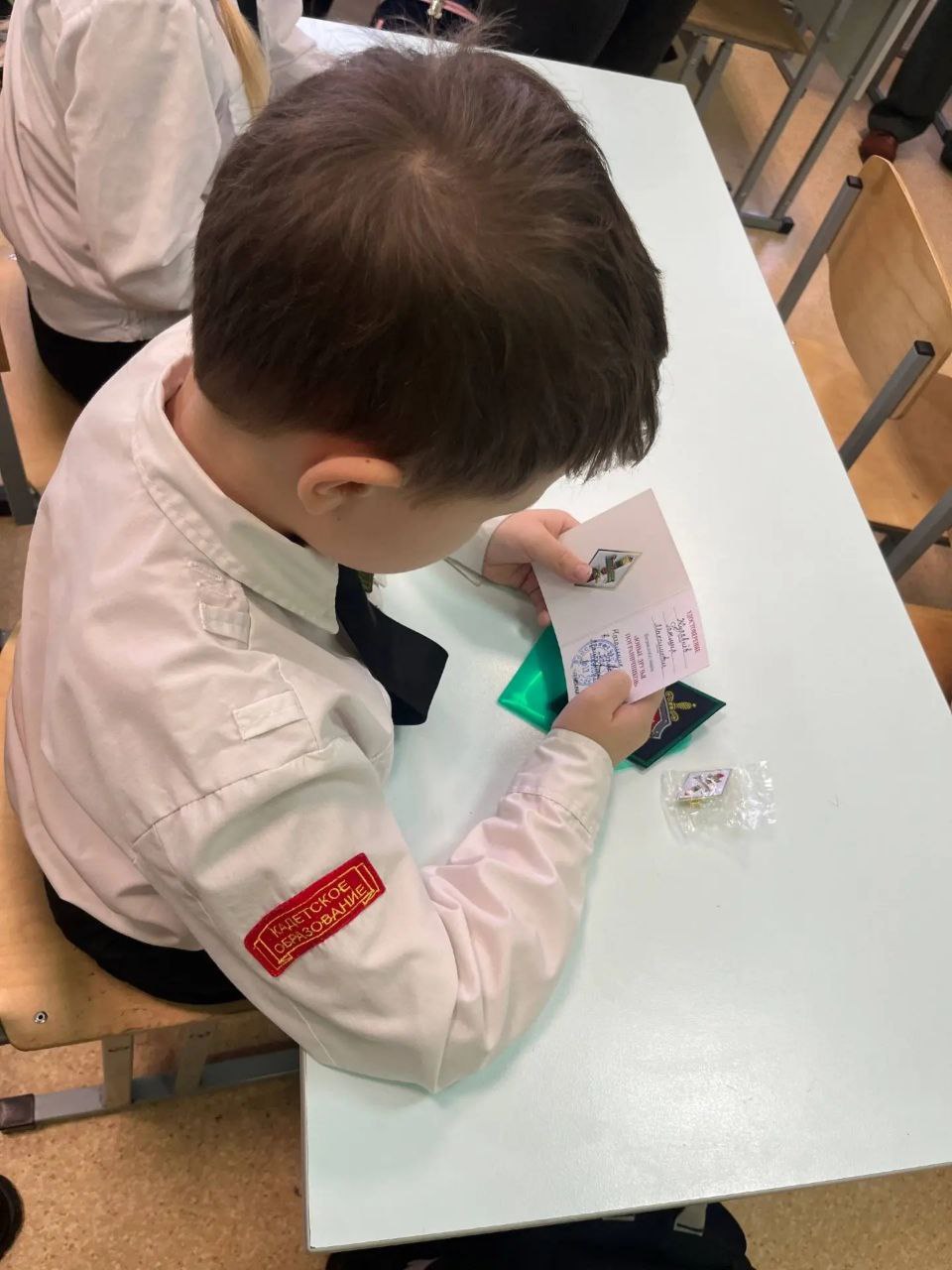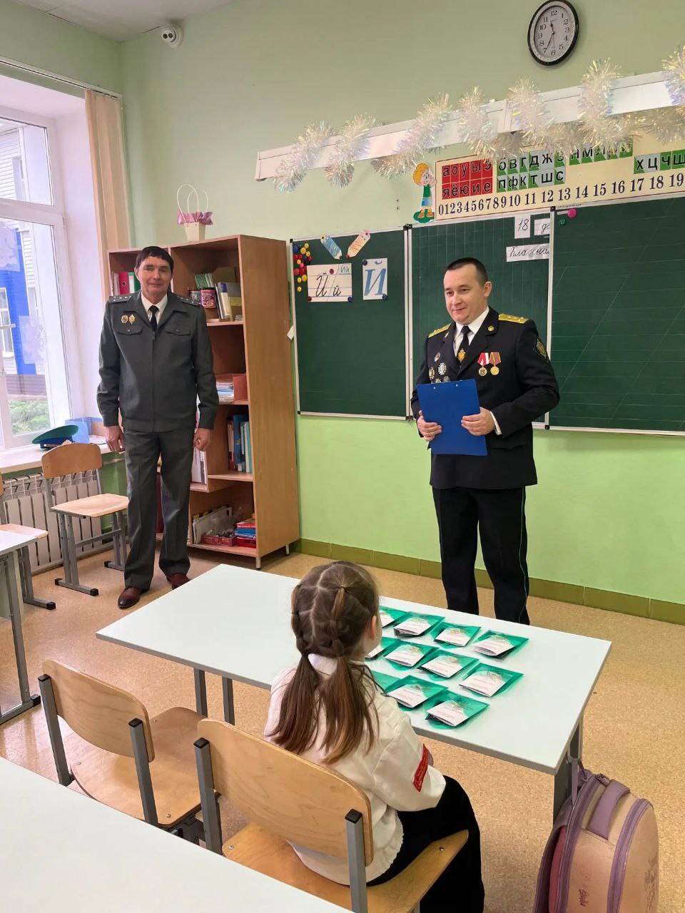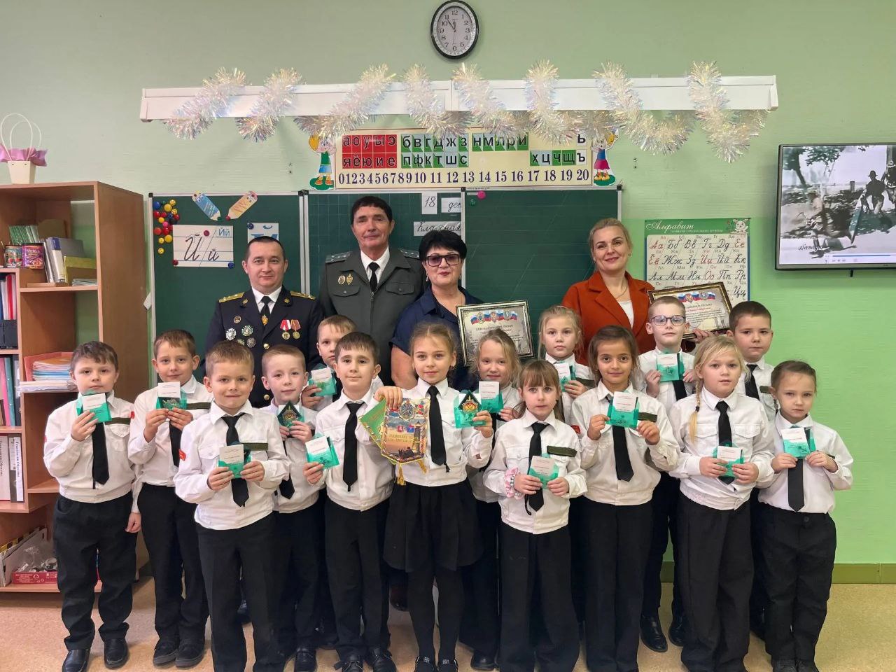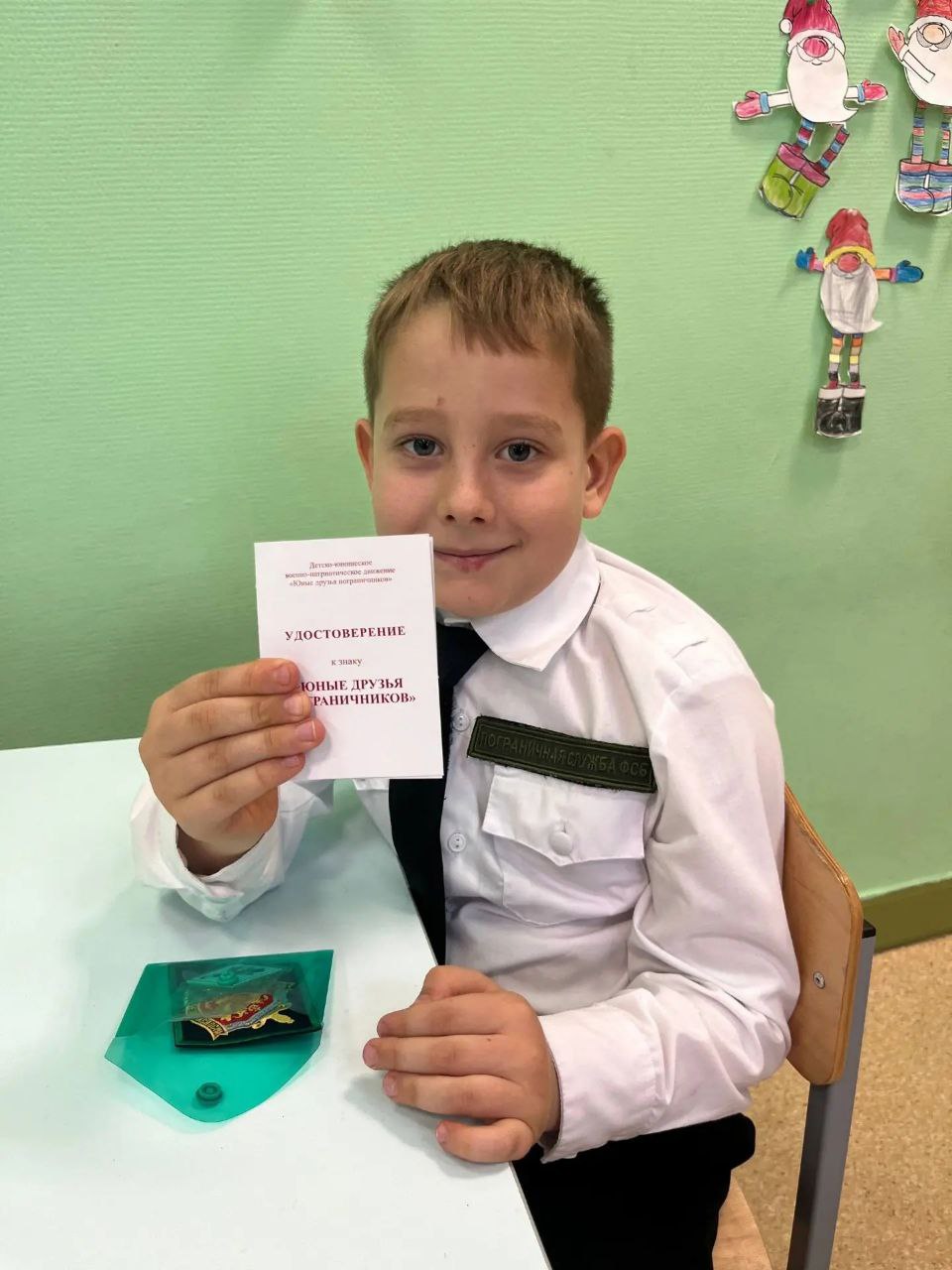 🗣Воспитанникам кадетского класса были вручены нагрудные знаки «Юные друзья пограничников» и шевроны.
