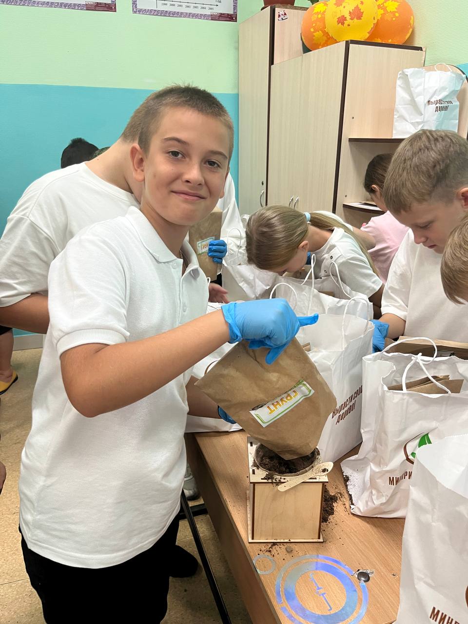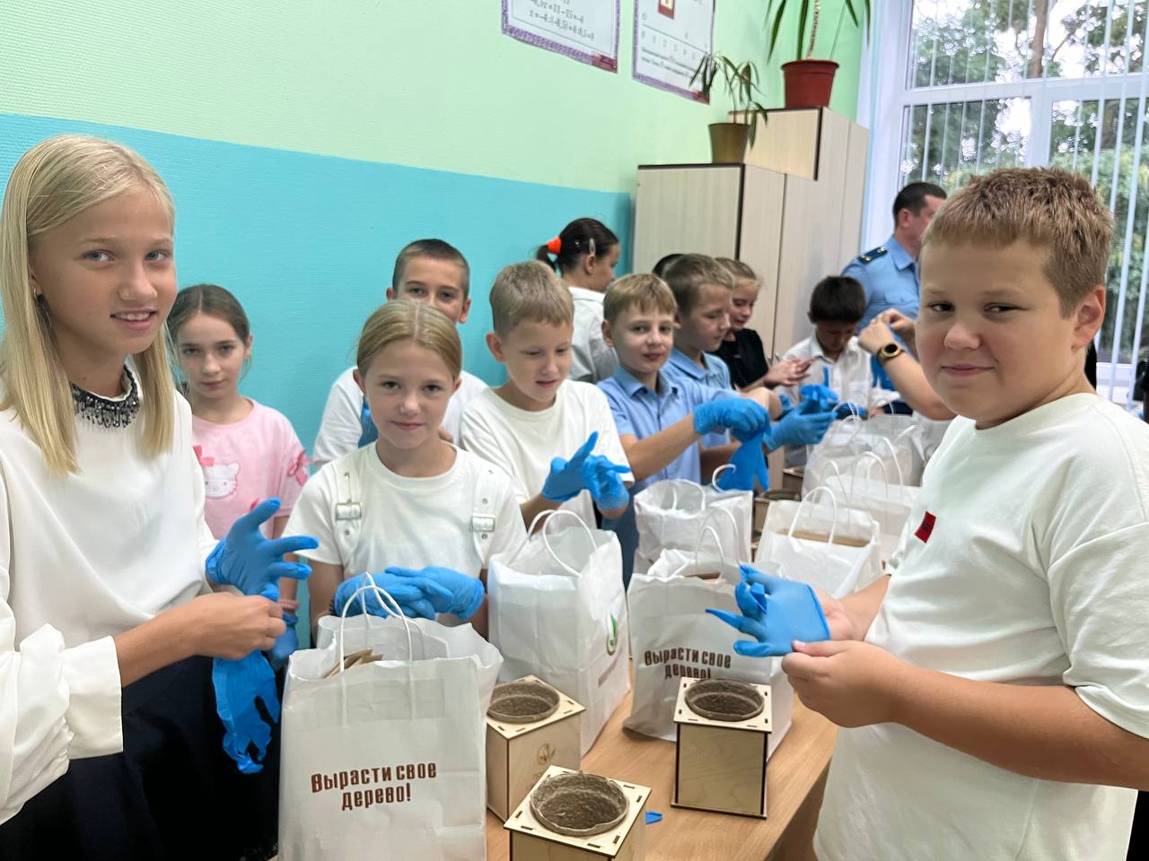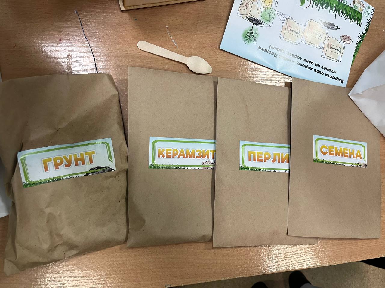 Малышам выдали специальные наборы (горшочек, перчатки, керамзит, грунт, перлит, семена), а также дневники наблюдения за растением.