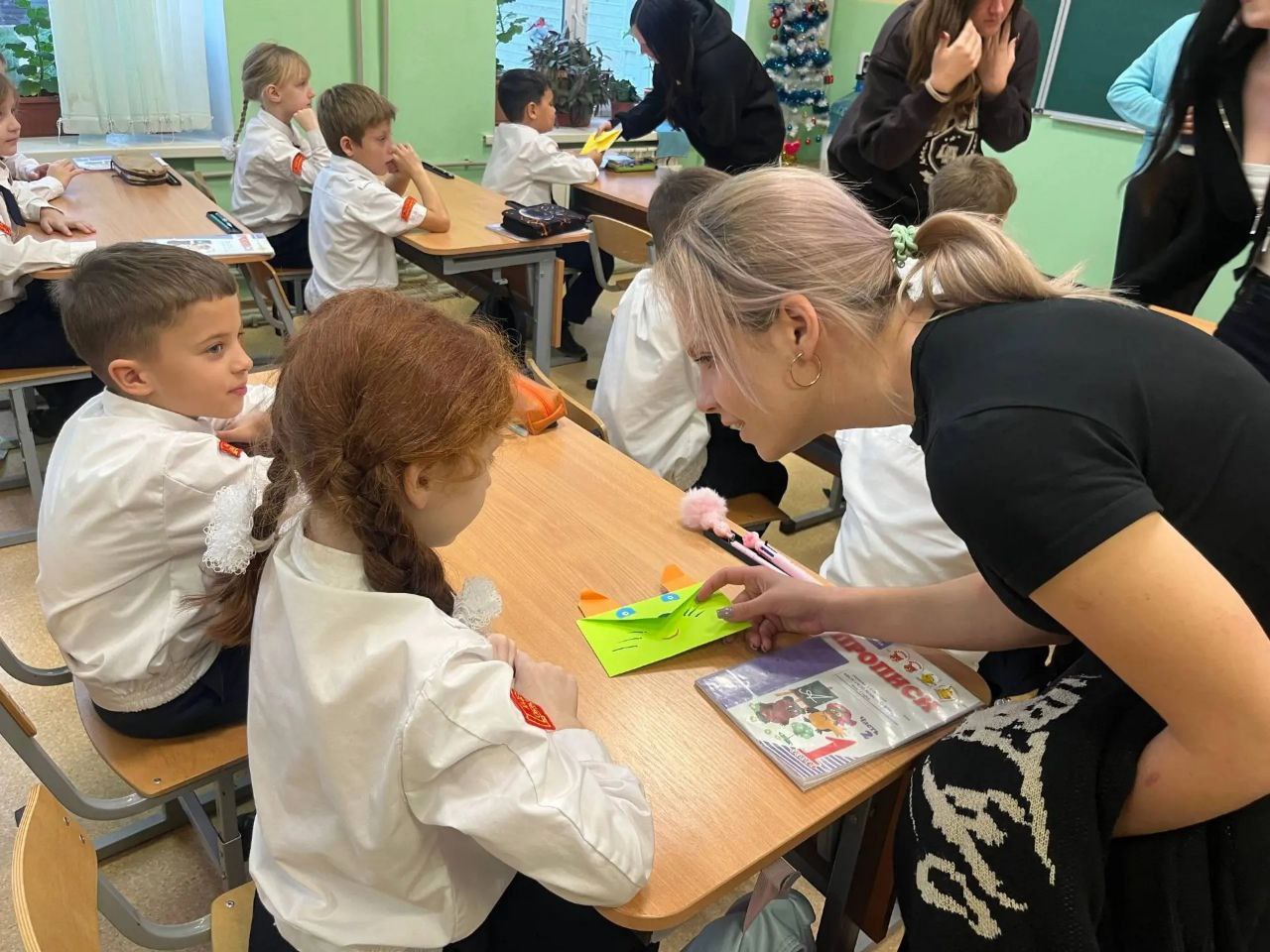 ✨Особое значение имели слова, что этот день — праздник доброты, щедрости и чудес, когда каждый из нас может стать волшебником, дарящим радость и свет окружающим. Старшеклассники передали в дар маленьким гостям конверты с изображениями милых животных и приятными сюрпризами внутри, напоминая о том, что даже самая маленькая доброта способна творить волшебство.