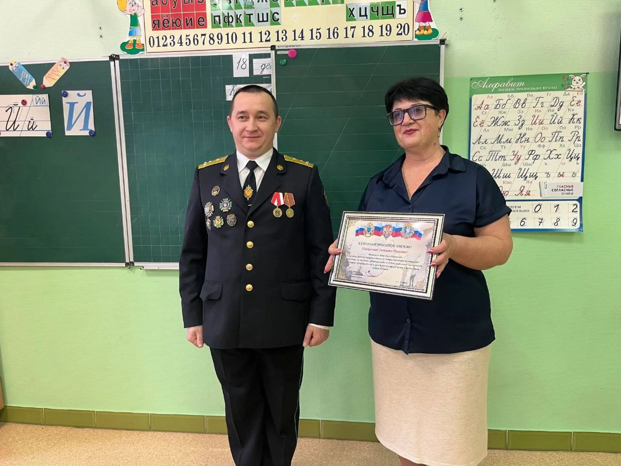 👤👤Заместитель начальника отделения (пограничной заставы) в населенном пункте Черноморское Сергей Соколов и председатель Крымского отделения по Черноморскому району Российского совета ветеранов пограничной службы Дмитрий Рогалевич рассказали истории о героизме и самоотверженности пограничников, также были вручены благодарственные письма директору школы Ирине Дроган и классному руководителю Светлане Черкасских за патриотическое воспитание молодежи.